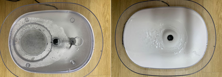 조립도 쉽고 부품들도 간단하게 이루어져있어서 청소가 쉬운 장점이 있어요. 특히 소음이 거의 없고, 물튀김도 없어서 강아지들도 거부감없이 물을 잘마셔요. 대신에 물이 반정도 항상 채워져있어야 하는데 알림소리가 없어서 그부분이 아쉬웠어요. 대신에 3만원대 초반의 가격으로 반려동물에게 깨끗한 물을 마실수 있게 해줘서 만족스러웠어요. 반려동물 정수기를 구매하시려는분들에게 유용한 제품인거 같아요.